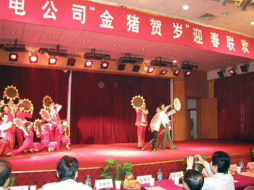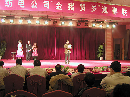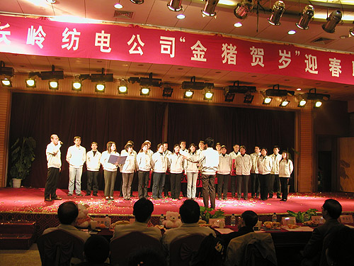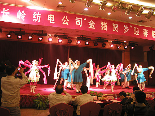 激情豪邁詠舊歲,輕歌曼舞迎新年。2007年2月13日,公司在寶雞萬(wàn)利大酒店舉行了長(zhǎng)嶺紡電“金豬賀歲”迎春聯(lián)歡會(huì)。公司董事長(zhǎng)李強(qiáng)、總經(jīng)理薛冬泉、公司領(lǐng)導(dǎo)班子以及老領(lǐng)導(dǎo)李友仁、老專家曾明高與公司500多名員工齊聚聯(lián)歡會(huì)。聯(lián)歡會(huì)現(xiàn)場(chǎng)張燈結(jié)彩,喜氣洋洋,空氣中滿溢著濃濃的節(jié)日氣氛。
