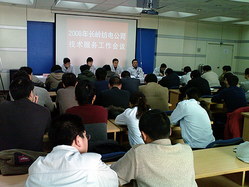 2月13日,春節(jié)后的第一個工作日,長嶺紡電公司2008年技術(shù)服務(wù)工作會議在公司第二會議室召開,來自全國35個片區(qū)的40名技術(shù)服務(wù)人員參加了會議。會議由公司副總經(jīng)理兼銷售公司總經(jīng)理董靜洲主持,公司總經(jīng)理薛冬泉到會并作重要講話。參加會議的還有公司副總經(jīng)理魏寧賢、總工程師呂志華和銷售公司的相關(guān)人員。