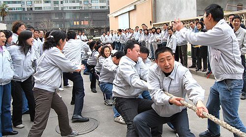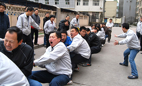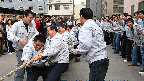 公司5個分會11個部門的近百名員工參加了比賽。雖然時至隆冬、寒風(fēng)料峭,但不管是場上隊員還是場下拉拉隊,熱情絲毫不減,比賽在熱烈歡快的氣氛中進行,激烈而又有序。經(jīng)過兩個多小時的激烈角逐,制造部一隊?wèi){借雄厚的實力和耐力獲得了拔河比賽的冠軍,在第二、三名的較量中,制造部二隊和銷售公司實力相當(dāng),雙方隊員都竭盡全力,制造部二隊略高一籌,以耐力取勝獲亞軍。在跳繩比賽中,財務(wù)部憑借良好的技術(shù)水平和團隊精神勇奪第一,制造部的巾幗群英們發(fā)揮出色奪得第二,質(zhì)量管理部和綜合部不分伯仲,并列第三。
