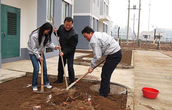 一場春雨剛過,春風拂面,乍暖還寒,參加植樹的30多名員工一大早就來到了新建住宅小區(qū)植樹現(xiàn)場,大家拿著鐵锨、鐵鎬等工具,有的忙著舞鎬挖坑,有的施肥撒藥,有的培土澆水,干勁沖天。經(jīng)過兩個多小時的勞動,大家共種植了玉蘭、女貞、紅葉李、銀杏等樹木二百多棵??粗慌排磐Π蔚男?,每個員工洋溢著喜悅的笑容,大家感到栽培下去的不僅僅是一顆小樹,更是一份祝愿和希望。一點綠意承載著我們的情感,一棵小樹寄托著大家的希望,愿它快快成長并和我們一起共同見證長嶺紡電的發(fā)展壯大。