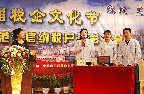 為廣泛深入宣傳普及稅法知識(shí),進(jìn)一步提高納稅人依法、誠(chéng)信納稅意識(shí),建立和諧融洽的稅企關(guān)系,寶雞高新區(qū)地稅局舉辦了首屆稅企文化節(jié),開展了豐富多彩的征文、書畫、文藝演出等活動(dòng)。本次知識(shí)競(jìng)賽共有六支代表隊(duì)參賽,競(jìng)賽分四個(gè)環(huán)節(jié),分別是必答題、搶答題、判斷題、風(fēng)險(xiǎn)題。我公司參賽選手經(jīng)過(guò)認(rèn)真仔細(xì)的準(zhǔn)備,表現(xiàn)突出,對(duì)答如流。為給競(jìng)賽隊(duì)加油,展示長(zhǎng)嶺紡電公司風(fēng)采,公司還組織了加油方隊(duì),臺(tái)上沉著應(yīng)對(duì),臺(tái)下掌聲陣陣,充分展示了長(zhǎng)嶺紡電員工豐富的稅法知識(shí)、過(guò)硬的心理素質(zhì)以及良好的團(tuán)隊(duì)精神。經(jīng)過(guò)四個(gè)環(huán)節(jié)的緊張競(jìng)賽,最終紡電公司代表隊(duì)獲得一等獎(jiǎng),蒙牛集團(tuán)、中鐵電氣化獲得二等獎(jiǎng),凌云集團(tuán)等三家單位獲得三等獎(jiǎng)。