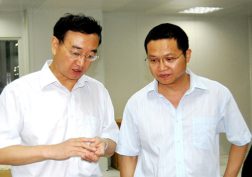 徐文英一行在公司總經(jīng)理薛冬泉、副總經(jīng)理趙利、總工程師呂志華的陪同下參觀了公司產(chǎn)品陳列室、恒溫恒濕實驗室、紡織電子產(chǎn)品總裝廠房以及噴氣織機生產(chǎn)車間,對公司噴氣織機產(chǎn)品的研制、生產(chǎn)、銷售情況進行了解。薛冬泉總經(jīng)理對公司發(fā)展歷程、產(chǎn)品技術(shù)創(chuàng)新情況以及長嶺紡電工業(yè)園的基本情況做了介紹,特別是公司近幾年在棉纖維性能測試儀器和棉花異纖清除機產(chǎn)品領(lǐng)域取得的突破向徐會長作了詳細(xì)的匯報。徐文英會長對公司近幾年在產(chǎn)品技術(shù)創(chuàng)新領(lǐng)域取得的成果表示充分的肯定,認(rèn)為公司產(chǎn)品線的不斷豐富將會有效提升企業(yè)市場競爭力,促進企業(yè)的發(fā)展,公司棉纖維性能測試儀的研制成功,是我國棉紡織行業(yè)的一件大事,他希望公司能不斷提升棉纖維性能測試儀系列產(chǎn)品的性能,盡快在國內(nèi)推廣使用,進一步提高國內(nèi)棉花檢測機構(gòu)和紡織企業(yè)的棉花檢測裝備水平,促進棉紡織工業(yè)的技術(shù)進步和產(chǎn)業(yè)升級。