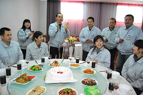 公司堅(jiān)持人性化管理,把員工的利益作為頭等大事。為增強(qiáng)員工的凝聚力,讓員工感受到公司大家庭的溫暖與關(guān)懷,自今年開始,公司為所有員工在每周一集中為當(dāng)周生日的員工舉辦生日聚會,慶祝生日。在元月10日的生日酒會上,公司后勤部精心準(zhǔn)備了8個涼菜、8個熱菜、生日蛋糕、水果和紅酒,點(diǎn)燃生日蠟燭,唱起生日快樂歌。公司領(lǐng)導(dǎo)和各部門領(lǐng)導(dǎo),也來到生日聚會上,一一向過生日的員工敬酒祝福。公司給員工過生日,不僅營造了和諧的企業(yè)文化,而且也凝聚了人心。參加生日聚會的員工深受感動,他們說,公司為員工過生日事小意義大,讓我們在其中感受到家庭般濃濃親情。