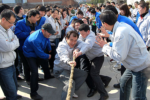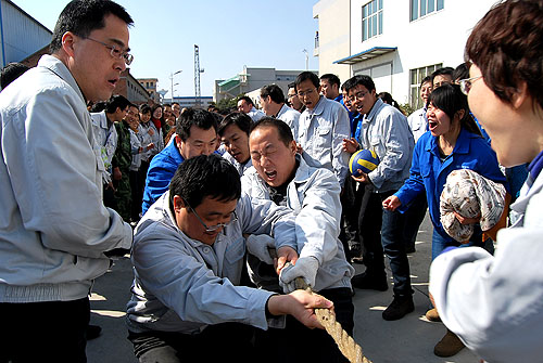 隨后,紡電公司9個分會、14個部門的300多名員工參加了運動會。此次運動會設(shè)置了“拔河、齊心協(xié)力綁腿跑、傳球接力、”三個項目。各分會和各參賽部門都認真對待,積極組織訓練,各部門也給予全力支持。運動會本著“友誼第一、比賽第二”的原則,賽場上隊員全力以赴、斗志昂揚,比賽緊張激烈、精彩紛呈,展現(xiàn)了紡電員工的活力和激情。經(jīng)過激烈的角逐,織機制造部分會和紡研所分會分獲傳球接力比賽第一、二名;綁腿跑比賽前兩名分別為紡電制造部分會和紡研所分會;紡電制造部分會和保衛(wèi)部機關(guān)一分會聯(lián)隊分獲拔河比賽前兩名。