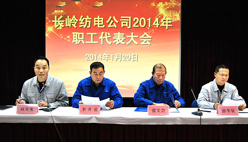 1月20日,長(zhǎng)嶺紡電公司2014年職工代表大會(huì)在公司第二會(huì)議室召開,89名員工代表和15名列席代表參加了會(huì)議。長(zhǎng)嶺電氣公司董事長(zhǎng)、黨委書記、紡電公司董事長(zhǎng)張寶會(huì)參加會(huì)議,并作重要講話。長(zhǎng)嶺電氣公司黨委副書記、工會(huì)主席李升前一同出席。