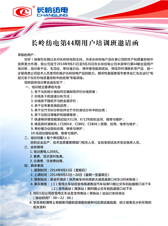 長(zhǎng)嶺紡電第44期用戶培訓(xùn)班邀請(qǐng)函