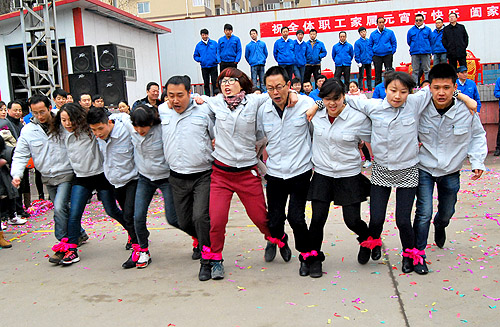 正月十五,長嶺職工鬧元宵活動(dòng)在文化廣場舉行,在四名紡電員工參演的《相親相愛》歌聲中拉開序幕。趣味游戲比賽中,紡電公司領(lǐng)導(dǎo)與職工一起,大家齊心協(xié)力,共同完成了“齊心協(xié)力、10人11足、抱球跑接力、撈元宵接力”等游藝活動(dòng),場面緊張激烈,加油聲此起彼伏。紡電公司組成了四個(gè)隊(duì)參加競技比賽活動(dòng),最終獲得了“10人11足”項(xiàng)目第一名、撈元宵接力第二名的好成績,充分展現(xiàn)了紡電人積極進(jìn)取的團(tuán)隊(duì)精神。