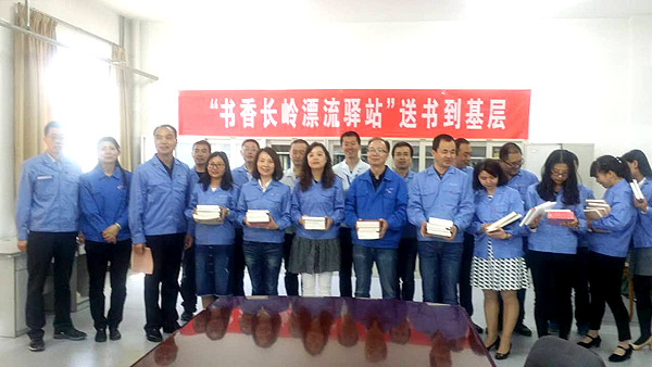 4月28日上午,長(zhǎng)嶺電氣公司黨委工作部贈(zèng)書(shū)儀式在紡電公司綜合樓三層閱覽室舉行。電氣公司黨委工作部部長(zhǎng)張瑞華代表電氣公司黨委,將八十多本黨建、經(jīng)濟(jì)、管理、文學(xué)、勵(lì)志等各類圖書(shū)送到了紡電公司員工手中, 標(biāo)志著“書(shū)香長(zhǎng)嶺漂流驛站”正式在我公司落戶。公司黨總支書(shū)記高金寬、各支部書(shū)記、支部委員等三十多名員工參加了儀式。