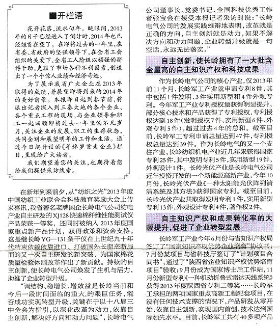 來自長嶺電氣公司自主創(chuàng)新工作的報告