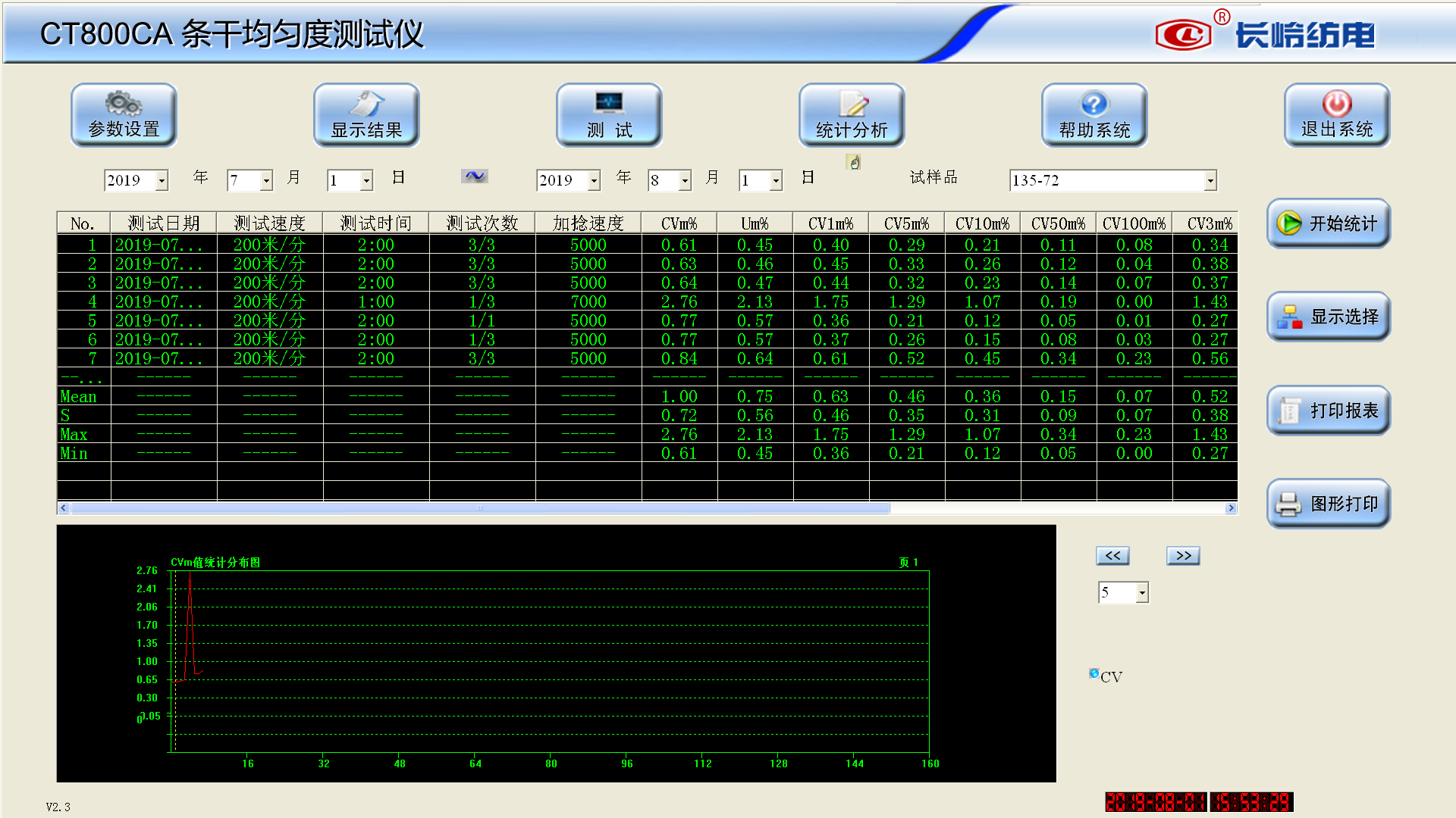 按照相應(yīng)的設(shè)定時(shí)間進(jìn)行統(tǒng)計(jì),給出紗線的特定指標(biāo)的變化趨勢(shì)