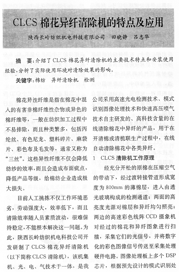 CLCS棉花異纖清除機的特點及應用