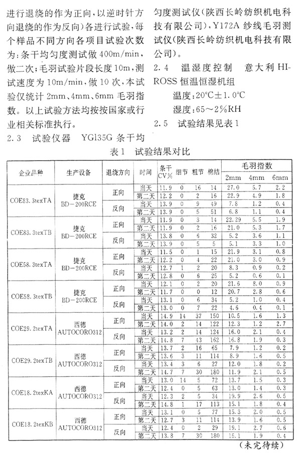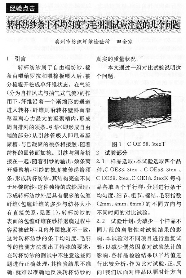 轉(zhuǎn)杯紡紗條干不均勻度與毛羽測試應注意的幾個問題