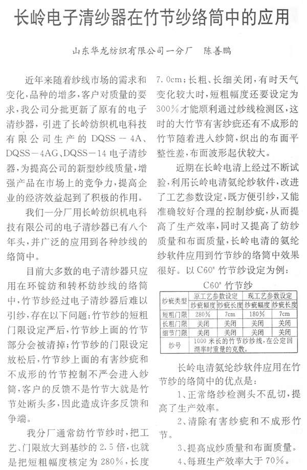 長嶺電子清紗器在竹節(jié)紗絡筒中的應用