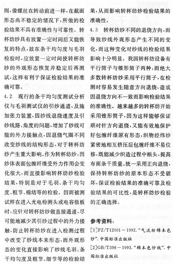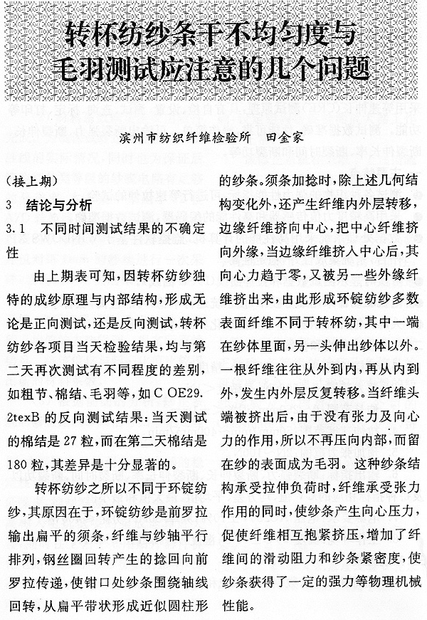 轉(zhuǎn)杯紡紗條干不均勻度與毛羽測(cè)試應(yīng)注意的幾個(gè)問(wèn)題