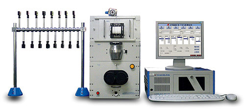 CT800C條干儀由檢測(cè)分機(jī)(包括張力器、檢測(cè)單元、加捻單元、傳動(dòng)單元、吸紗單元)、主處理機(jī)(包括顯示器、工控機(jī)、鼠標(biāo)和鍵盤)、打印機(jī)及紗架等附件組成。