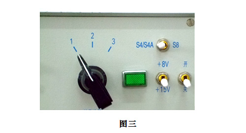 在進行S30檢測頭維修前,將“S4/4A、S8轉(zhuǎn)換開關(guān)”置于“S4/4A”位置,將“+8V、+15V 轉(zhuǎn)換開關(guān)”置于“+15V” 位置,“錠號選擇”開關(guān)置于“1”位置,如圖三所示: