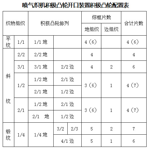 CA082噴氣織機配置積極凸輪開口裝置需依照織造的織物組織不同,選用不同積極凸輪片,積極凸輪片的選用須遵循這樣的原則: