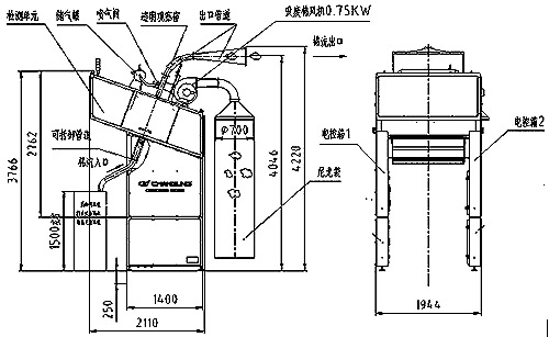 5.2 安裝占地面積約1500mm×4000mm,高度4400mm。要求地面水平、平整。安裝位置對(duì)檢測(cè)效果影響很大,其它安裝方式可能降低清除效果。