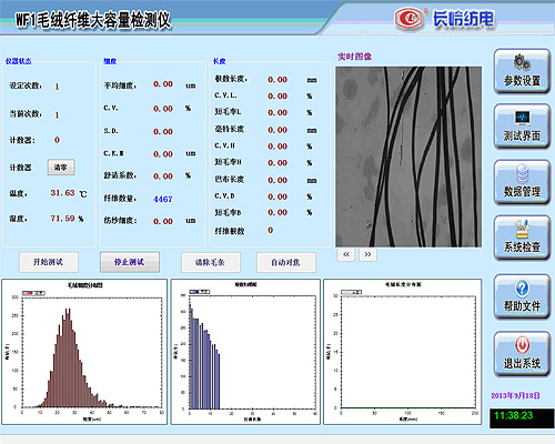 該儀器是羊毛、羊絨纖維性能綜合測試儀器。它測試速度快、取樣量大、輸出指標(biāo)多。在較短時(shí)間內(nèi)能檢測出毛絨纖維的細(xì)度、長度等性能指標(biāo),輸出直徑、直徑CV值、根數(shù)長度、豪特長度、巴布長度、長度CV值、短毛率等15項(xiàng)指標(biāo)??梢詽M足我國毛絨纖維質(zhì)量檢驗(yàn)體制改革儀器化的需要。這種儀器對纖檢機(jī)構(gòu)公正檢驗(yàn)毛絨纖維質(zhì)量和毛絨纖維生產(chǎn)、貿(mào)易過程中評價(jià)品質(zhì)具有十分重要的意義,對毛紡織企業(yè)掌握毛絨纖維性能、確定工藝參數(shù)和科研機(jī)構(gòu)研究等都具有重要作用。