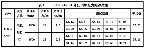 退捻加捻法對預(yù)加張力非常敏感。新標(biāo)準(zhǔn)規(guī)定的預(yù)加張力范圍為(0.50±0.10)cN/tex,即在捻度試驗(yàn)時(shí),針對某一線密度,其預(yù)加張力可以選(0.50±0.10)cN/tex,也可以選0.4cN/tex、0.50cN/tex、0.60cN/tex。(標(biāo)準(zhǔn)也沒有說明線密度是公稱線密度,還是實(shí)際線密度。在紡紗實(shí)際生產(chǎn)中,絕大多數(shù)情況下,實(shí)際特克斯并不等于公稱特克斯,實(shí)際線密度與設(shè)計(jì)線密度常有一定偏差。在百米重量偏差較大的情況下,以公稱特克斯計(jì)算與以實(shí)際特克斯所計(jì)算的預(yù)加張力、捻系數(shù),其準(zhǔn)確性就會存在一定的偏差)。以CJ18.2tex K為例,其預(yù)加張力可以選擇為10.92cN,也可以選擇9.10cN、7.28cN。在捻度試驗(yàn)中試樣退、加捻時(shí),預(yù)加張力的不同,試樣退、加捻至捻縮達(dá)到初始長度的快慢是不同的。這種快慢的不同,反映到試驗(yàn)結(jié)果上就是捻回?cái)?shù)的不同,CJ18.2tex K預(yù)加張力的選擇范圍大小差異近4cN,既然“退捻加捻法對預(yù)加張力非常敏感”,那么對于一個(gè)捻度試驗(yàn)預(yù)加張力加上4cN與減去4cN,對試驗(yàn)結(jié)果不會沒有影響。為具體說明起見,本文依據(jù)標(biāo)準(zhǔn)規(guī)定的(0.50±0.10)cN/tex,對CJ18.2tex K分別以0.4cN/tex、0.5cN/tex、0.6cN/tex的預(yù)加張力進(jìn)行捻度試驗(yàn),以探討不同預(yù)加張力對試驗(yàn)結(jié)果的影響。