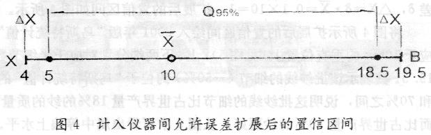 從圖2中查得相應(yīng)X的置信區(qū)間為5至18.5;再計入儀器間允許誤差δ,△X=δ•X =0.1×10=1,擴(kuò)展后的置信區(qū)間如圖4所示。