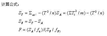 設yij為方案i(i=1、2、3)下第j(j=1、2、3、4、5、6、7、8、9、10)個試樣的測試結(jié)果,Ti為方案i下數(shù)據(jù)和,T為總和,ST為總離差平方和,SA為因子(方案)的離差平方和,SE為隨機誤差的離差平方和,fT、fA、fE分別為ST、SA、SE的自由度,r為方案數(shù),m為每一方案下進行的試驗次數(shù)。
